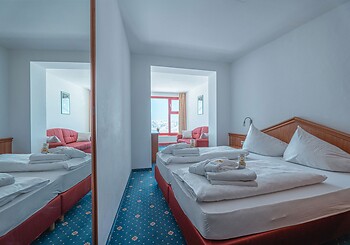 Our lovingly furnished Family Suite 139, measuring approx. 30 m², offers plenty of space for relaxing days with the whole family. The suite features a bedroom with a comfortable double bed, a cozy sitting area, and a separate children's room – perfect for shared moments and individual retreat.