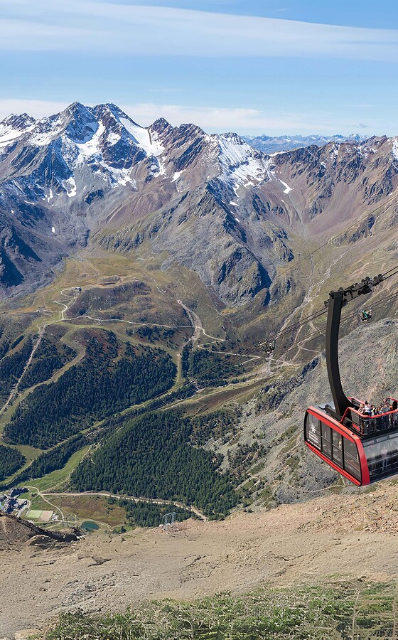 Val Senales is a side valley of Val Venosta in South Tyrol, northern Italy. You can travel by car or public transport until you reach the village of Maso Corto. Then, the Glacier cable car takes you directly to Hotel Grawand.