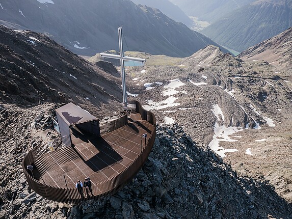 Float up with the Glacier cable car and get ready to be speechless: the restaurant at Glacier Hotel Grawand sits directly on top of the Val Senales Glacier, with stunning views of hundreds of snow-covered peaks. You are surrounded by eternal ice, impressive rock formations and a deep blue sky. The best view? From the Iceman Ötzi Peak viewing platform.